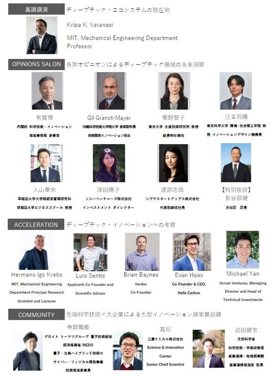 オープニングイベントでは、基調講演としてMITのMechanical Engineering DepartmentからKripa K. Varanasi(クリパ・バラナシ)教授が「ディープテック・エコシステムの現在地」と題し海外の事例を交えながらエネルギーやバイオテックのディープテック領域が経済や社会にどれだけ影響を与えるのか」、「ディープテックの技術が市場に広がる際の課題や政府と民間の支援に関する現況」、「日本のディープテック・スタートアップにおける課題」など、スタートアップを取り巻く環境や支援、解決に向けた提言など示唆に富むオピニオンが発表されました。