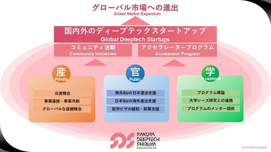 SDSでは世界トップクラスのパートナーとともにディープテック・スタートアップを支援するグローバルなアクセラレータープログラムとして「Sakura Deeptech Accelerator」を実施します。本アクセラレーター プログラムは、「グローバル」「一流のディープテック・メンターシップサークル」「広域渋谷圏・渋谷カルチャー」「日本最大級の大企業コミュニティ」の4つの柱を掲げ支援を行います。本アクセラレータープログラムは、米・日における幅広いネットワークを活かし、スタートアップ投資とオープンイノベーションを通じた新規事業創出の実績のあるスクラムスタジオ株式会社が運営します。