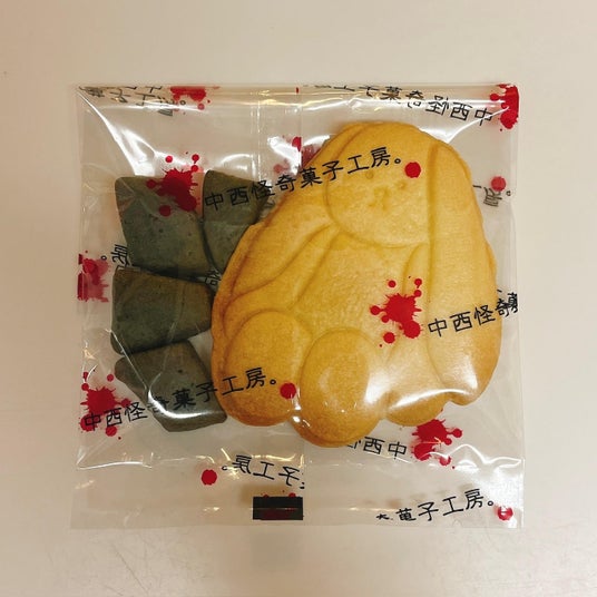 目玉に指に耳に脳みそなど、ホラーでポップなお菓子を作っている中西奇怪菓子工房。が、映画『胸騒ぎ』に登場するビャアンの娘アウネスお気に入りのウサギのぬいぐるみとキーアイテムの石をつけた不穏なクッキーをお届け!中西奇怪菓子工房。オリジナルの血が飛び散った袋もポイント。オンライン販売は3 週間限定、上映劇場では本作のタイトル“胸騒ぎ=ムナサワギ”に合わせて、673 円(税込)で販売!劇場に足を運んだ際には、ぜひお買い求めを。
