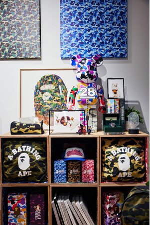 さらにはBAPE(R)︎の名作アイテムや、BAPE STA™️スニーカーなども展示され、訪れた人を過去・現在・未来へと誘います。