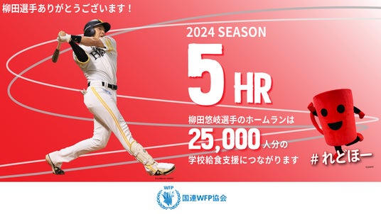 認定NPO法人国際連合世界食糧計画WFP協会(以下、国連WFP協会、神奈川県横浜市:安藤宏基会長)は、福岡ソフトバンクホークス 柳田 悠岐(やなぎた ゆうき)選手より、2024年シーズンのホームラン5本分にあたる75万円の寄付を受けました。これは、6年連続の寄付となり、今年は2万5,000人分の国連WFPの学校給食支援につながります。
