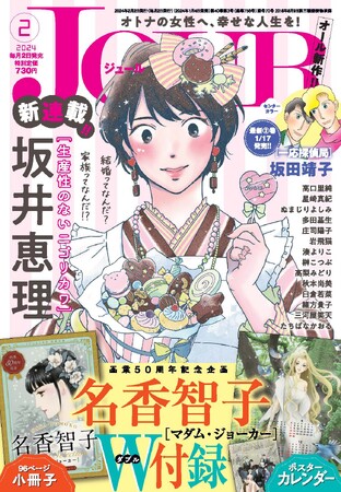JOUR1月号の大谷博子先生画業50周年記念豪華W付録に引き続き、JOUR2月号では同じく画業50周年を記念して名香智子先生の大人気シリーズ『マダム・ジョーカー』にまつわる豪華W付録つき!!