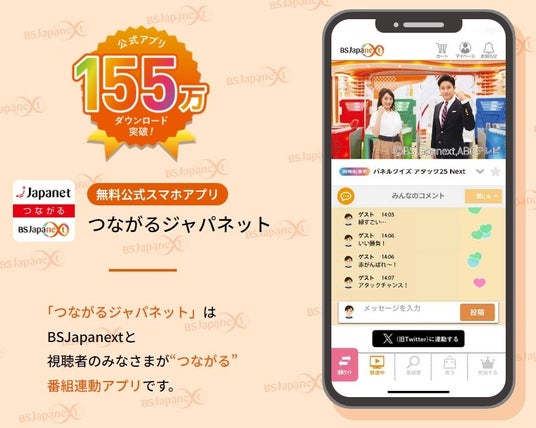 公式アプリ「つながるジャパネット」では、番組に対する評価や各番組のテーマに対する投稿をしたり、放送中にリアルタイムでほかの視聴者の方とコメント投稿を楽しむことができます。