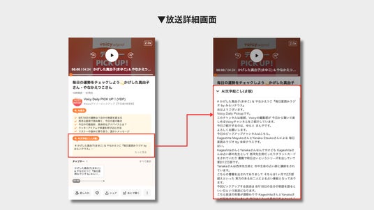 放送詳細画面に、放送内容の全文を文字起こしとして表示します。