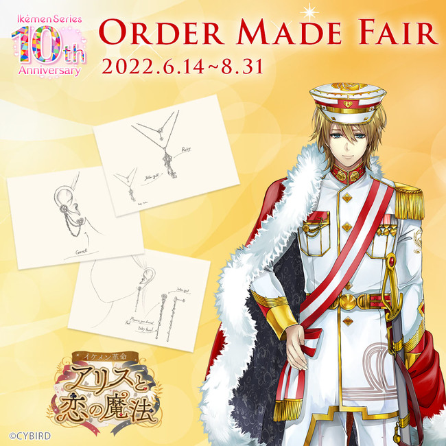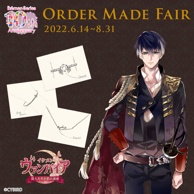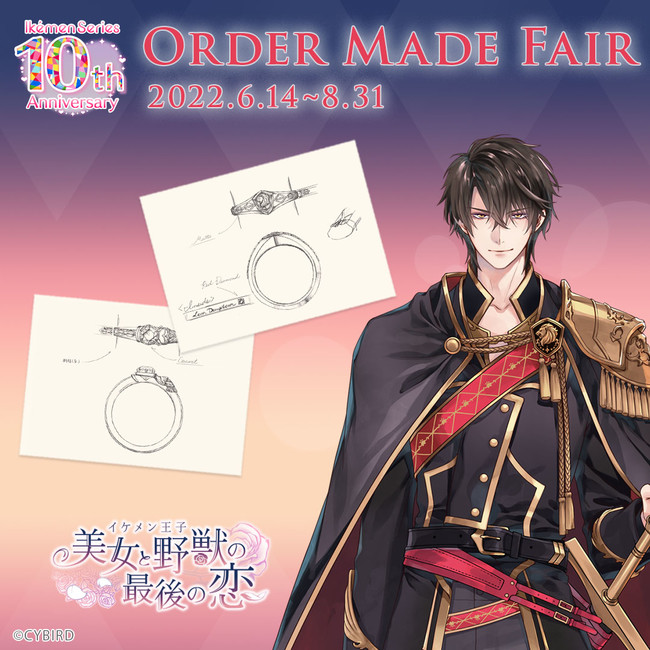 大人のための本格的なキャラクタージュエリーを扱うユートレジャー(東京都豊島区:代表取締役:伊藤 崇史)は、株式会社サイバード(本社:東京都渋谷区、代表取締役社長 兼 CEO 本島 匡)の全世界でのシリーズ累計会員数3,500万人を誇る女性向け恋愛ゲーム「イケメンシリーズ」10周年を記念し、オーダーメイドジュエリーフェアを6月14日(火)~8月31日(水)の期間限定で開催します。このほどの企画は、オンライン特設サイトのフォームよりお申込みいただいたお客様のお好きなキャラクターやアイテムなどのご要望をもとに、デザイナーがデザイン画を提案することで、世界でたったひとつのジュエリーができます。イケメンシリーズ7作品からお好きなキャラクターやモチーフ選ぶことができ、デザインのご提案からお見積もりまでは無料です。