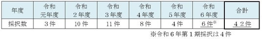本事業は、令和元年度から実施しており、令和6年度で6年目となります。これまでの 採択数は次のとおりです。