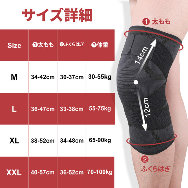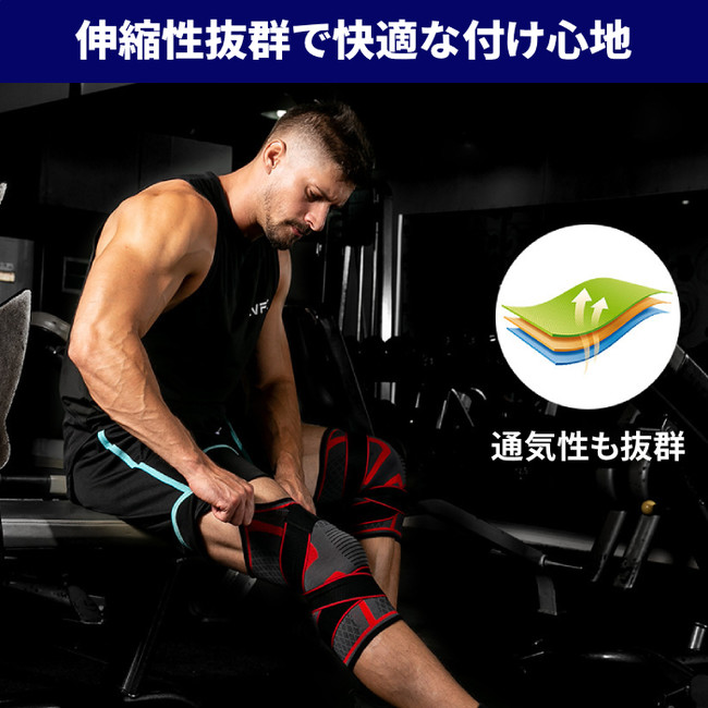 しっかり固定して全方位の膝をしっかり支えます。