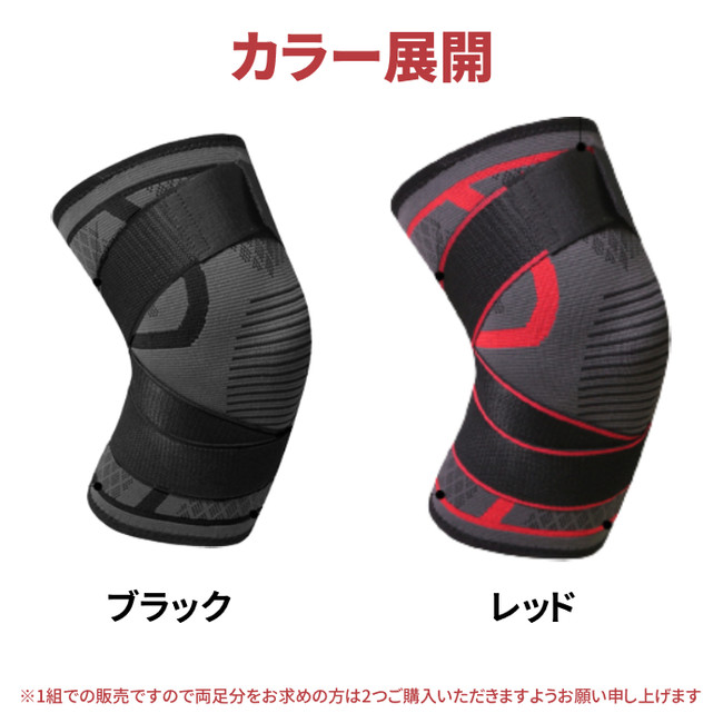 2本の加圧式ベルトで調節可能な膝サポーター。