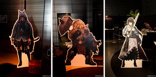 会場内には伝説の冒険者7人の等身大パネルも展示。キャラクター、種族による等身の違いを実際に確認することができました。フォトスポットに限らずイベント会場内は撮影自由となっており、好きなキャラクターと並んで撮影するなど、お越しいただいた方々が思い思いの楽しみ方をされていました。