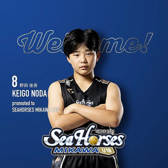 この度、2024-25シーズンよりシーホース三河U15から#8 野田佳吾選手のシーホース三河U18への昇格が決定しましたので、お知らせいたします。