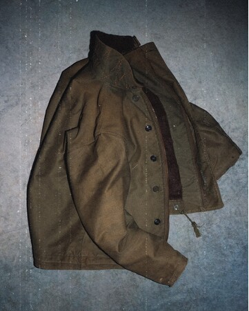 長年蓄えたダメージやステインによってハードな印象を与える古着に、巧みなリペア技術を施すことで洗練された佇まいを纏う一着に。リペアに使用する素材もビンテージにこだわっている他、すべてのアイテムにギャランティー代わりとなるビンテージピンズをカスタム。