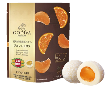 ブランド果実である愛知県産蒲郡みかん果汁を使用したジュレを、ベルギー産のホワイトチョコレートでコーティング。ひと粒ほおばると優しいみかんの香りと味わい、ふくよかなホワイトチョコレートの風味がお口いっぱいに広がります。