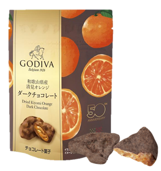 和歌山県産清見オレンジを蜜漬けし乾燥させて、ベルギー産のカカオ分58%のダークチョコレートでコーティング。爽やかなオレンジの香りとダークチョコレートのほろ苦さが絶妙なバランスです。