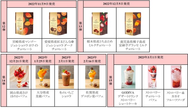 ゴディバ ジャパン株式会社(東京都港区)は、日本上陸50年を迎えたゴディバ ジャパンと、創立50年を迎えた全国農業協同組合連合会(以下、全農)との共同プログラム「GODIVA×全農 コラボレーションプロジェクト」のフィナーレとして、「ジュレショコラ」2種類と、「ドライフルーツのチョコレートがけ」3種類、および「GODIVA×全農 コラボレーション 全国津々浦々味めぐりセット」を、2023年3月20日(月)より、一部のゴディバショップ限定、ゴディバ オンラインショップなどにて数量限定で販売いたします。