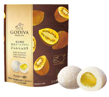「ジュレショコラ」には、ブランド果実である愛知県産蒲郡みかん果汁を使用したジュレを、ベルギー産のホワイトチョコレートでコーティングした「愛知県産蒲郡みかん ジュレショコラ ホワイトチョコレート」と、強い甘みとほどよい酸味が特徴のブランド果実である東京都産東京ゴールドキウイのピューレを使用したジュレを、ベルギー産のホワイトチョコレートでコーティングした「東京都産東京ゴールドキウイ ジュレショコラ ホワイトチョコレート」の2種類をラインナップしました。