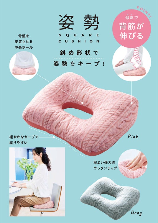 斜め形状で姿勢をキープ!!「姿勢スクエアクッション」