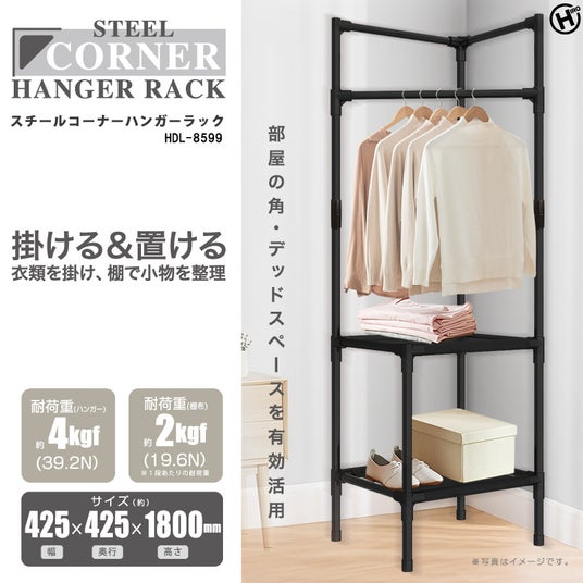 スチールコーナーハンガーラックは、無駄なスペースを有効活用できる便利な収納アイテムです。衣類を掛けるハンガー部分と、小物を整理できる棚が一体化しており、限られた空間を効率的に活用できます。省スペース設計のため、部屋の隅や狭いスペースにも設置可能。衣類やバッグ、小物類をすっきり収納しつつ、インテリアにも馴染むシンプルでスタイリッシュなデザインが特徴です。整理整頓をサポートします。