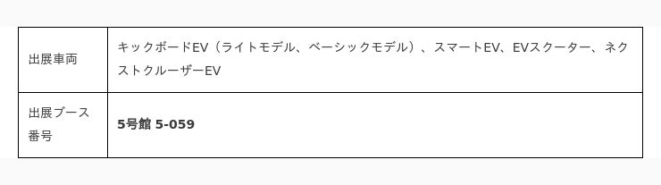 ブレイズでは、ブレイズの提唱する新ブランドコンセプト「LIFE EV」(*下記参照) の下に展開する電動モビリティ(EV)商品、1.免許不要、新商品の特定小型原付モデル:キックボードEV(2輪)、2.簡単折りたたみ・車載/室内保管もOK:ブレイズ スマートEV(2輪)、3.立ち/座り乗り2WAY対応:ブレイズ EVスクーター(2輪)、3.ミニジープタイプ:ネクストクルーザーEV(4輪)を出展いたします。