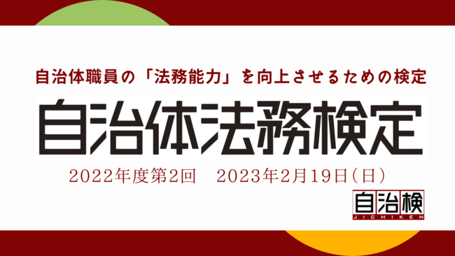 総務省後援の『自治体法務検定』。2022 年度については新たな取り組みとして、個人のパソコンで受検する「オンライン受検」を2023年2月19日(日)に実施いたします。