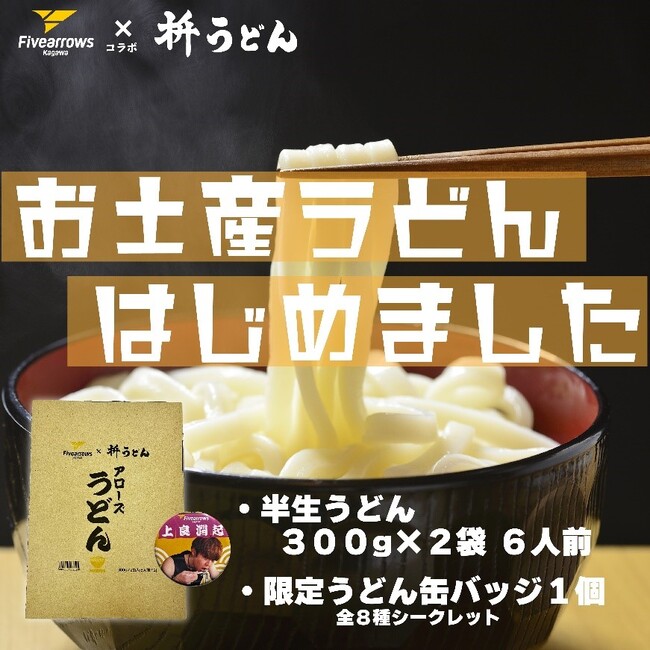香川ファイブアローズでは選手やスタッフも通う香川のうどんの名店「枡うどん」とのコラボ商品「アローズうどん」を販売いたします。