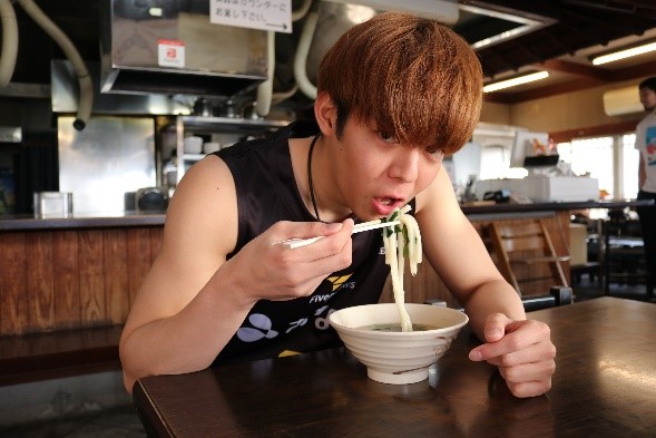 実際に選手がうどんを食べている風景を缶バッジにした、ここでしか手に入らない限定缶バッジ!