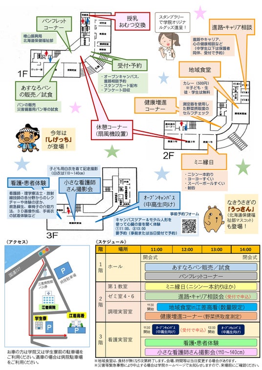 など、小さなお子さんから大人まで楽しめるイベントを企画しておりますので、「地域に開かれた学院」を目指す江差高看に、ぜひ足をお運びください。