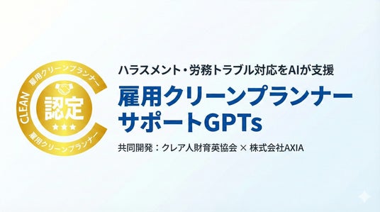 一般社団法人クレア人財育英協会(代表理事:酒井康博/東京都千代田区)と、同協会の提携代理店である株式会社AXIA(代表取締役:衣川竜也/大阪市北区)は、ハラスメントおよび労務トラブルの予防・対応を支援するGPTs「雇用クリーンプランナーサポートGPTs」を共同開発しました。