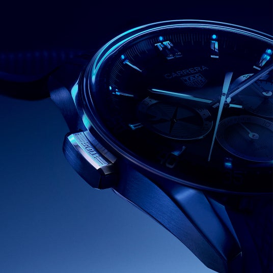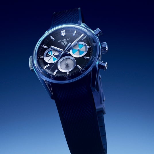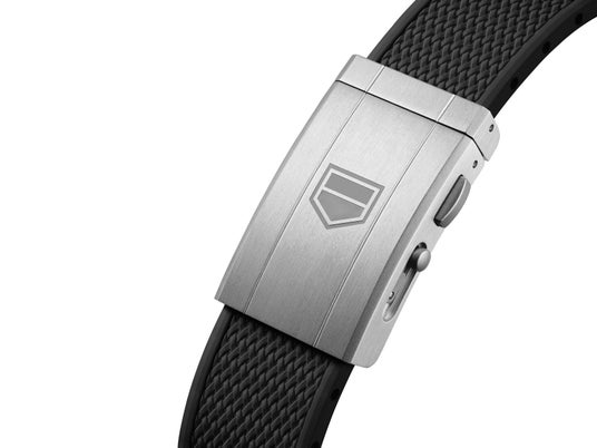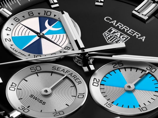 両社は、後期「シーファーラー」Ref. 2446Cのフィーリングを保ちつつも、12時位置に現在のTAG HEUERとCARRERAのロゴを配し、タグ・ホイヤーの未来を見据えるという意識的な決断を下しています。「シーファーラー」の全ヘリテージモデル同様、現在見られる「カレラ」の通常の日付表示も取り除かれ、ブラックの質感のあるラバーストラップが装着されることで、洋上で過ごすのによりふさわしいものとなっています。