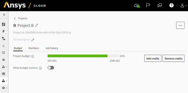 Ansys Cloudでは管理者機能が強化されており、ユーザグループの作成と管理、社内プロジェクトへの予算配分、クラウド使用状況の監視などが可能です。