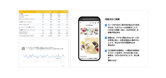 専門家の知見を搭載したAIによるECサイト分析と、その結果を元にした専門家による課題解決の伴走支援を軸に、EC事業者のビジネスモデル、課題、目標に合わせた最適なサポートを提供します。EC事業者が抱える運営課題を伴走支援で解決いたします。