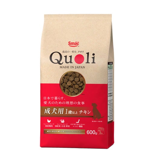 「Quoli」は厳選された国産素材を採用し、徹底した品質管理と理想の栄養設計を一粒に詰め込んだ、大切な愛犬のための理想の食事です。