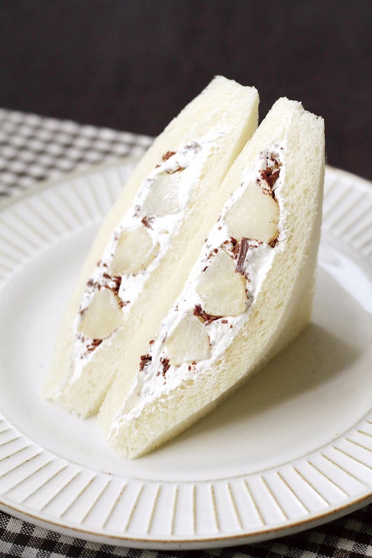 ●『ブロッサム&ブーケ』洋梨とミルクショコラのフルーツサンド(1パック) 453円【地下2階】カカオチョコレートを刻み、食感のグラデーションを楽しめる【洋梨×ショコラ】の贅沢なフルーツサンドです。