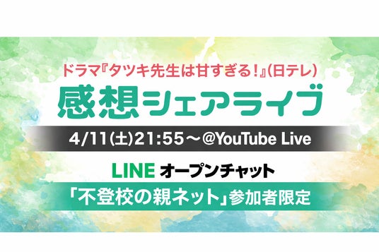 ドラマ放送直後の感想を、みんなで語りませんか?不登校の保護者と専門家が語る、ドラマ『タツキ先生は甘すぎる!』感想シェアYouTubeライブ開催決定!