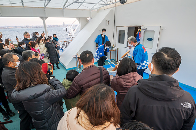 船内レストランでは、おせち料理やお雑煮なども楽しめるお正月特別ビュッフェをご用意。さらにデッキでは、餅つき大会やお雑煮の振る舞いでお正月を存分に満喫いただけます。