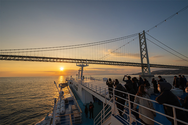 2024年元旦の朝、船の上から世界最大級の吊り橋「明石海峡大橋」と「初日の出」の絶景を眺められる「初日の出クルーズ」を開催いたします。