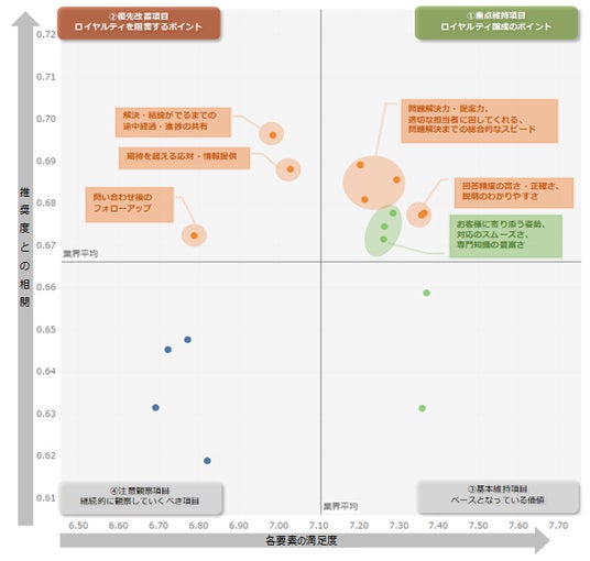 一方で「解決・結論が出るまでの途中経過・進捗の共有」や、「期待を超える応対・情報提供」、「問い合わせ後のフォローアップ」の項目において今後の改善が期待される結果となりました。