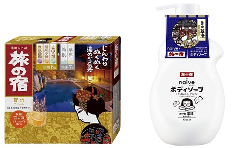 <左から:旅の宿 こだわりアソート、にごりアソート、贅沢アソート/全品、医薬部外品>