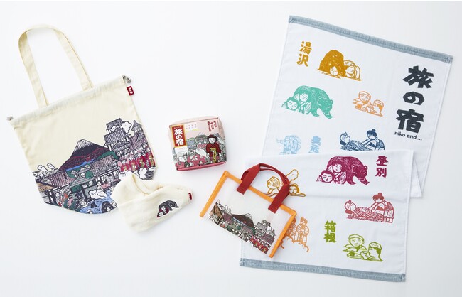 niko and ...は、ブランドが掲げる“uni9ue senses”(衣・食・住・遊・知・健・旅・音・LOCAL)の9つの要素を通して、ユニークなモノやコトを提案する企画を展開しています。この度、「旅の宿」のアイデンティティでもある、木田安彦氏による日本独特の原風景を描いた版画が演出するレトロで可愛いパッケージと、“ローカル温泉めぐりの旅”の気分を味わえるコンセプトに共感し今回のコラボレーションにいたりました。