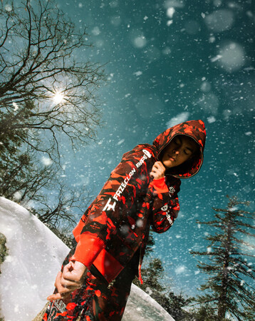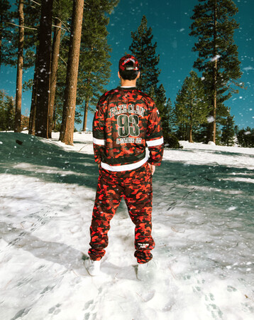 本コレクションのためにデザインされたカモフラージュパターンには、双方のブランディングが反映され、