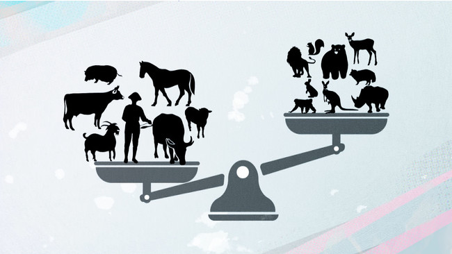 これまで以上に自然が都市における脅威として存在感を増したなかで「その先の未来」を考えるために、人類と自然の関係をあらためてとらえ直す必要があります。そのヒントになる数字が「96対4」。この数字は、陸上の哺乳類の全体重を足した場合、じつに96パーセントが人間と家畜で、野生動物はわずか4パーセントしかいないことを示しています。