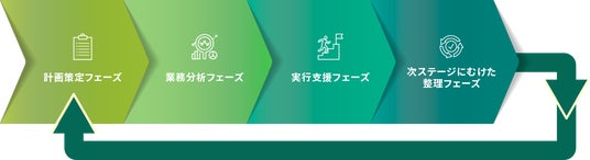 短期間で現状の業務課題を洗い出し、優先順位をつけ、成果を出すことを目指した施策の提案と具体的なアクションプランを共創します。リスクや初期投資を最小限に抑えつつ、段階的にDXを推進し、短期間で成果を出すことで、企業全体のデジタル化を進めていくことにつなげます。