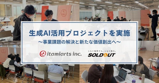 地方を含む全国の志ある中堅・中小企業の成長支援をマーケティング領域で展開するソウルドアウト株式会社(本社:東京都文京区 代表取締役社長CEO兼CCO:荒波 修、以下「ソウルドアウト」)は、株式会社イタミアート(本社:岡山県岡山市、代表取締役:伊丹 一晃、以下「イタミアート」)において、生成AIの導入と活用を支援する「生成AI活用プロジェクト」を実施しました。2024年11月から約3か月間にわたったこのプロジェクトは、ワークショップ形式の勉強会で知識向上を図りながら、生成AIを活用した事業課題の解決と新たな価値創出を目指し実施いたしました。