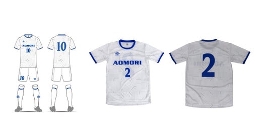 青森の伝統工芸の一つである「南部裂織(なんぶさきおり)」をモチーフに、青森県の伝統と『アンブロ』のオリジナリティが融合した特別なデザインです。フィールドプレーヤーのユニフォームは、青森の澄んだ空と海をイメージしたブルーを基調とし、クリーンなデザインに仕上げています。