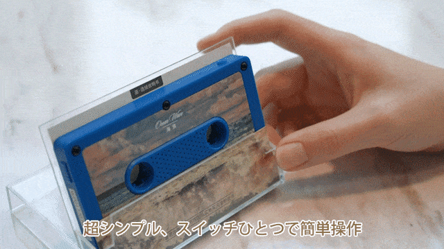 カセットテープ型のデザインを採用。コンパクトで収納しやすく、持ち運びにも便利。