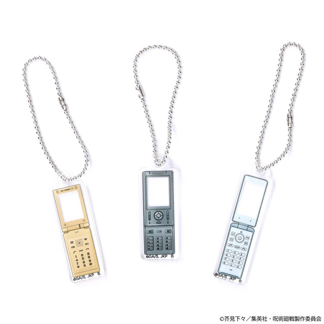 本商品は、TVアニメ『呪術廻戦』第2期「懐玉・玉折」に登場する、五条悟・夏油傑・家入硝子がそれぞれ持つ携帯電話をイメージしたアクリルチャームです。
