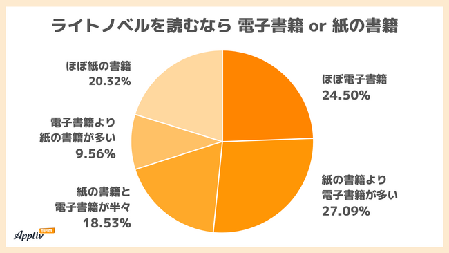 ライトノベルを読むなら、過半数が紙の書籍より電子書籍を利用している。