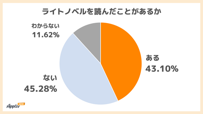 ライトノベルを読んだことがあるのは43.10%。20代男性は61.45%。
