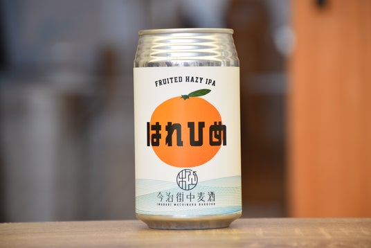 「今治街中麦造/はれひめ HazyIPA」 今治産希少みかん”はれひめ”を贅沢に使用したジューシーな甘みのある自家製クラフトビールです。