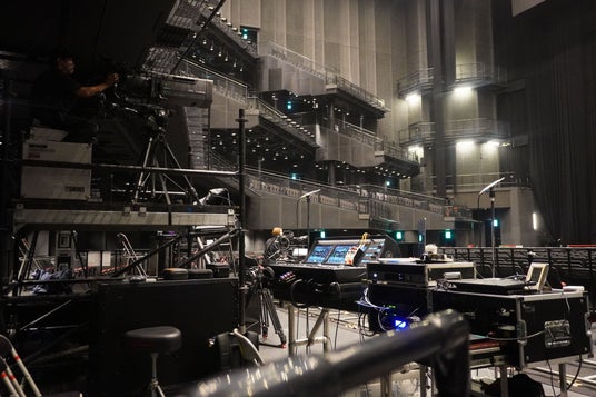15:30からリハーサル。撮影チームにとっては本番での動き方を確認する大事な時間です(一部のカメラマンはギリギリまでポジションを探っていました)。開演予定時刻の18:30を5分ほど押してコンサートが幕を開けると、松井さんと勝田さんがインカムでカメラマンに手際よく声をかけていきます。