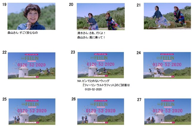 CMの見どころは、風が吹いても安心の『フィーリン ウルトラフィット』をつけて、写真撮影を楽しむシーンです。今回おふたりがやってきたのは、映画の舞台となり、SNSなどでも人気の「風車の丘」。あえて、強い風が吹き続ける丘の上で、森山さんと清水さんが『フィーリン ウルトラフィット』のフィット力を紹介します。強風の中、美しいヘアスタイルでモデルが登場。「こちらをご覧ください」という森山さんの紹介があると、モデルが髪から『フィーリン ウルトラフィット』を外します。自然で美しく、そして風にも強いウィッグに、清水さんからは「まさにウルトラフィット!」というコメントが。
